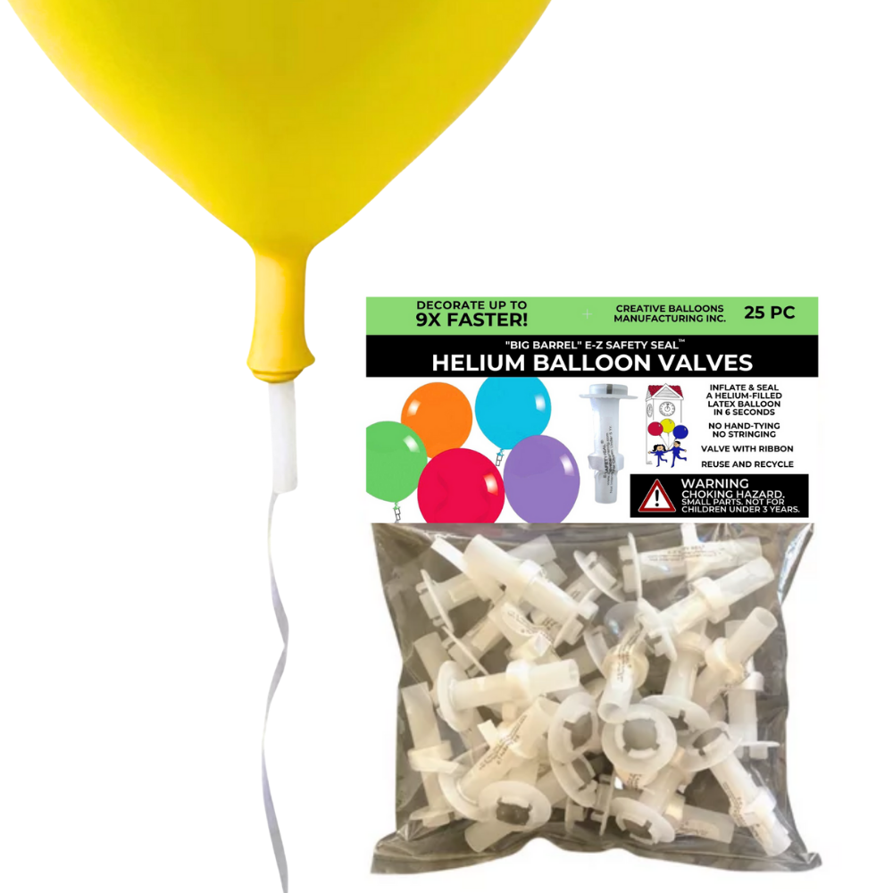 Includes Top Sellers: Big Barrel E-Z Safety Seal™ Helium Balloon Valves, 1-Piece E-Z Balloon Stick™, E-Z Balloon Tie™ And E-Z Balloon Disc™